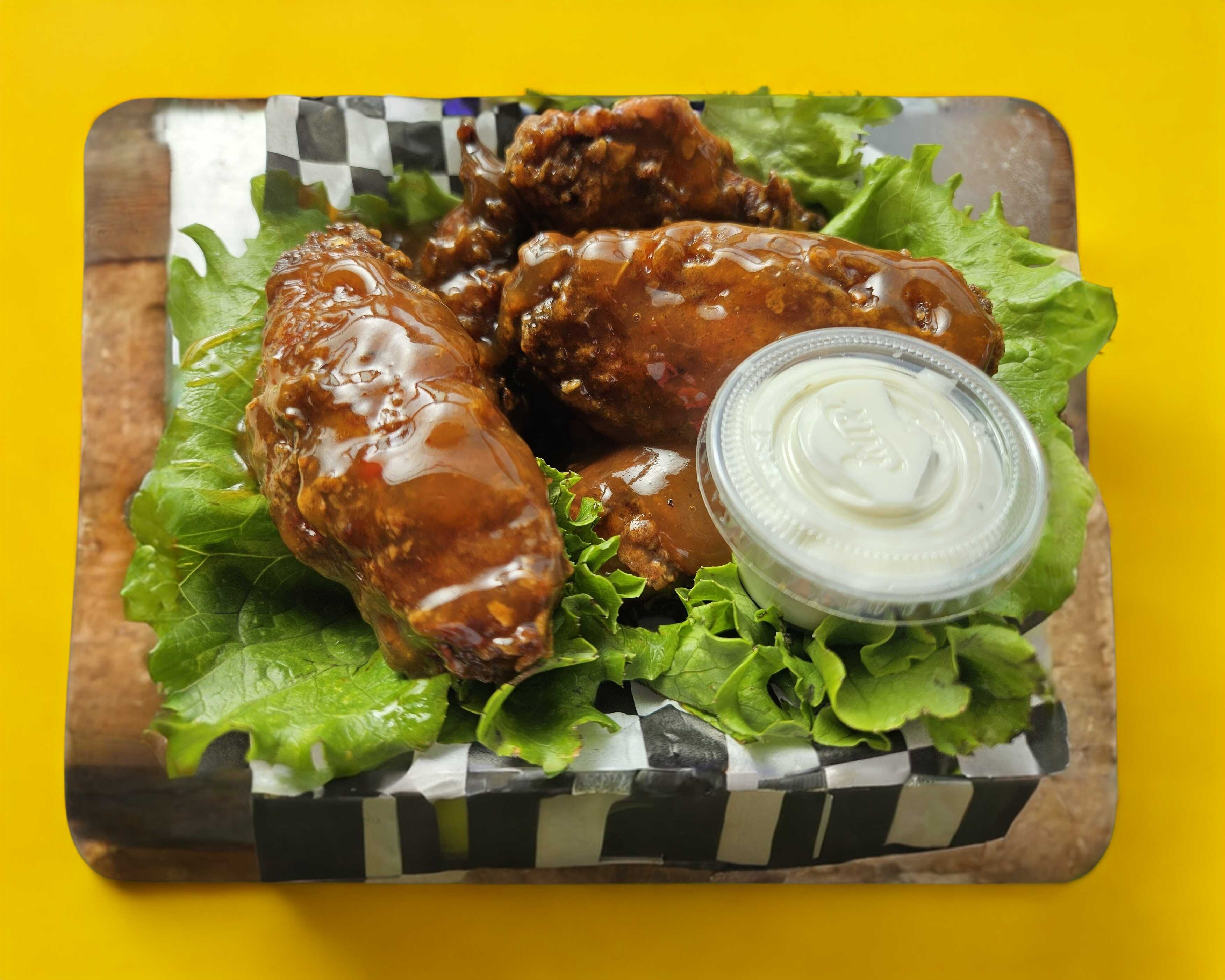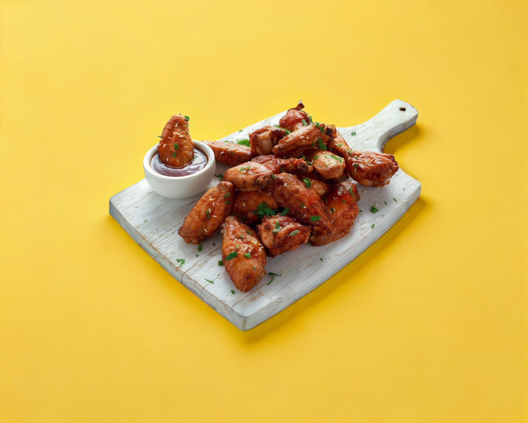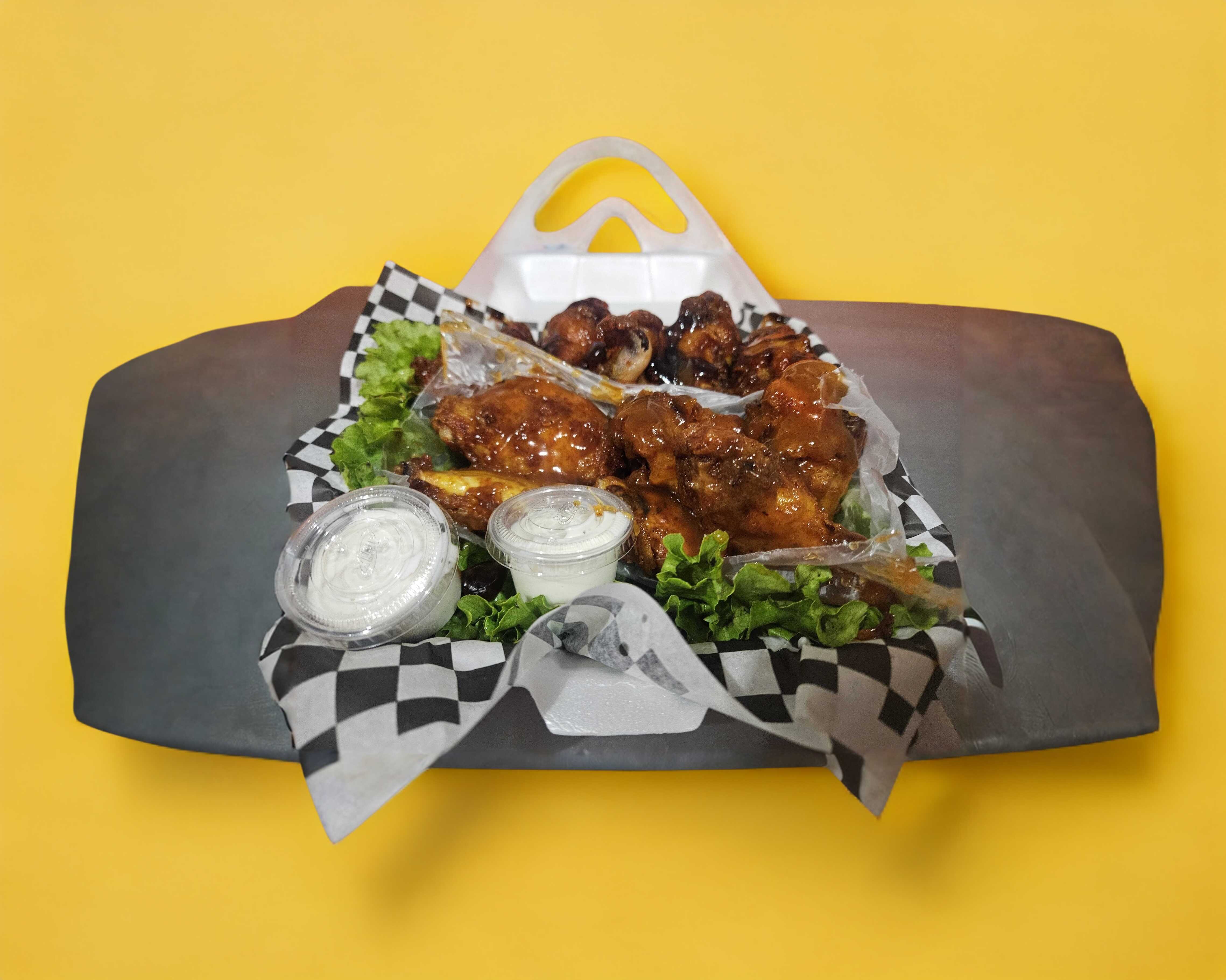 Orden de 840 gramos bañados con las salsas de tu preferencia, sobre una cama de lechuga Italiana, acompañadas de aderezo ranch
