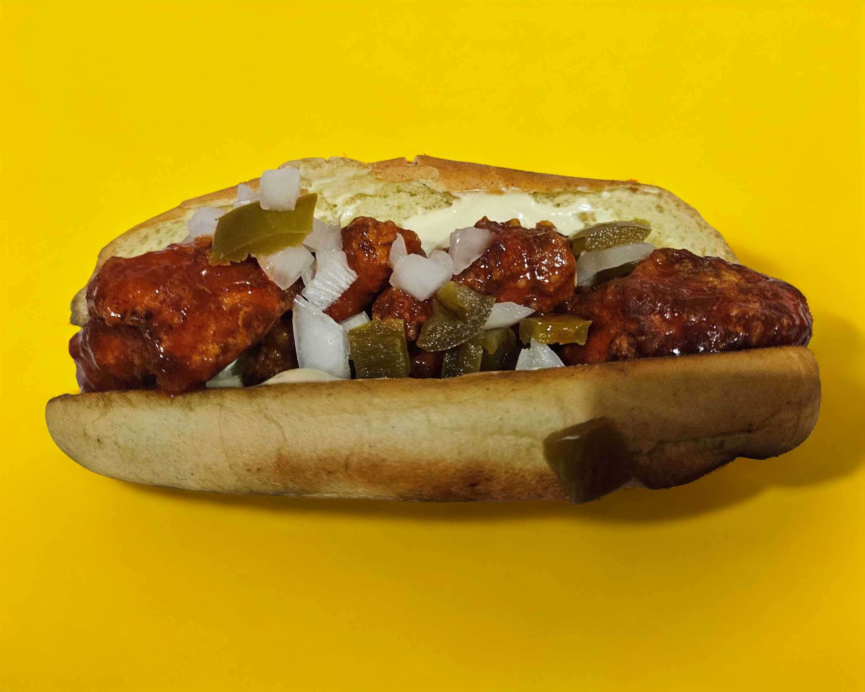Pan , boneless bañados en tu salsa favorita , cebolla , jalapeño , mayonesa