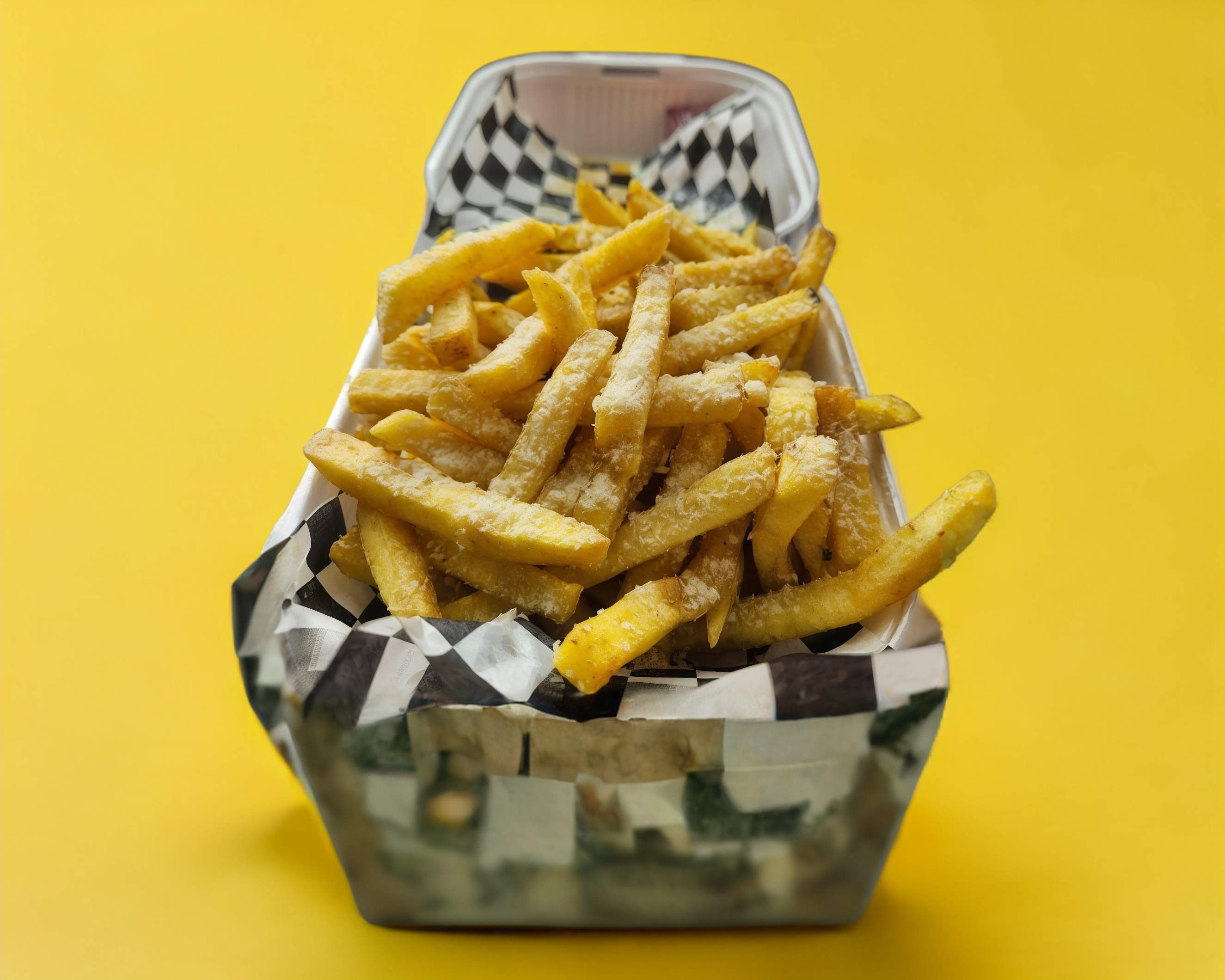Orden de 270 gramos de papas a la francesa espolvoreadas con queso parmesano, acompañadas de 1 sobre de Catsup y 1 sobre de salsa Valentina