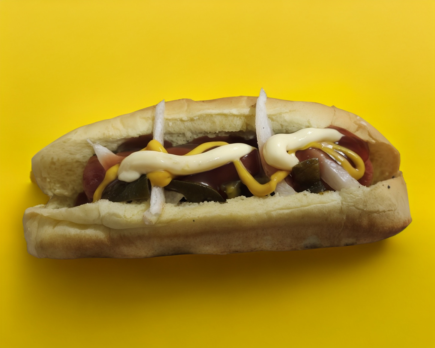 Pan, Salchicha, Cebolla, Jalapeño, Catsup, Mostaza, Mayonesa