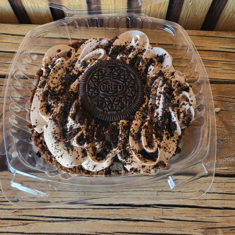 Bizcocho tres leches de chocolate oreo, trozos de galleta y betún de chololate