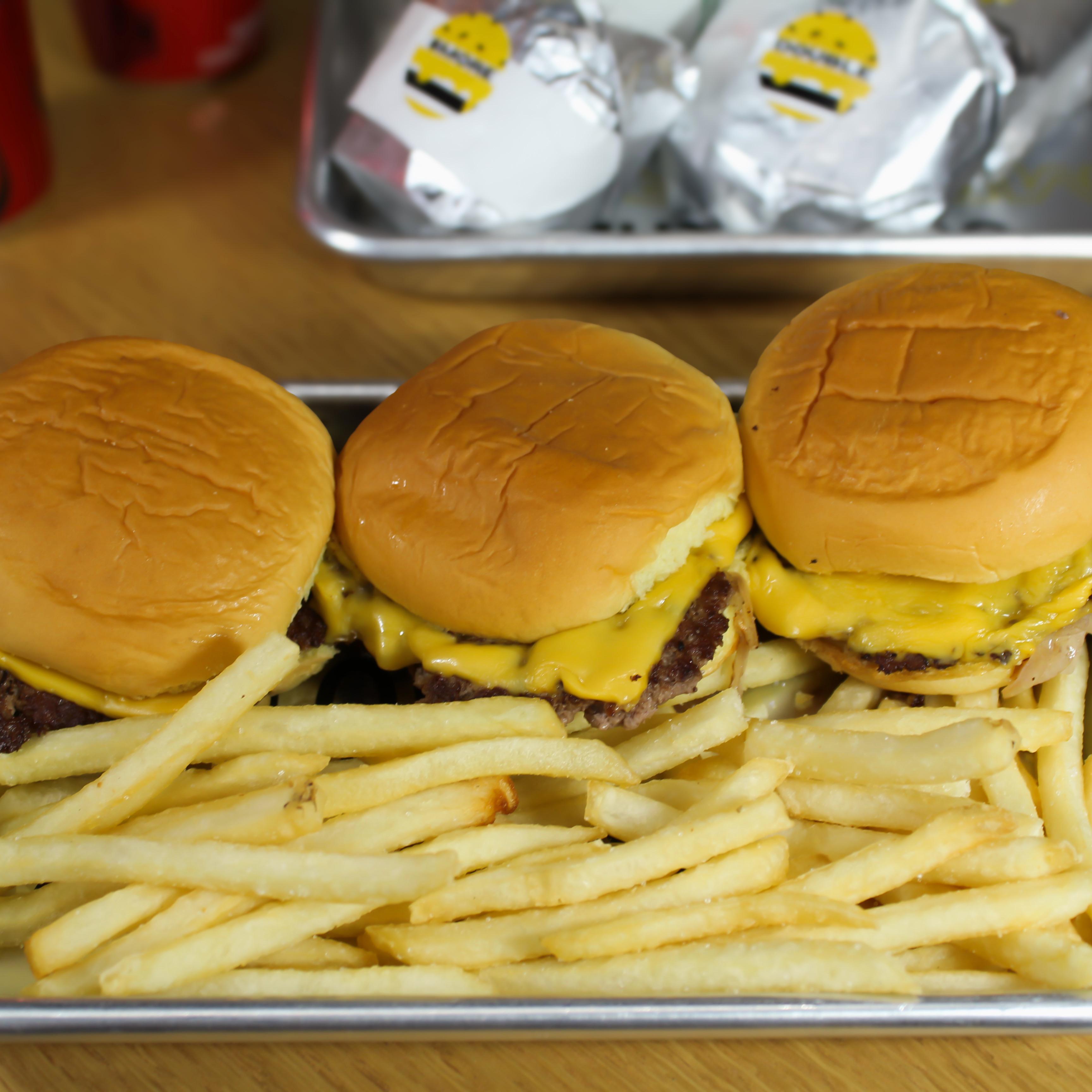 3 sliders sencillas, papas y bebida a elegir
