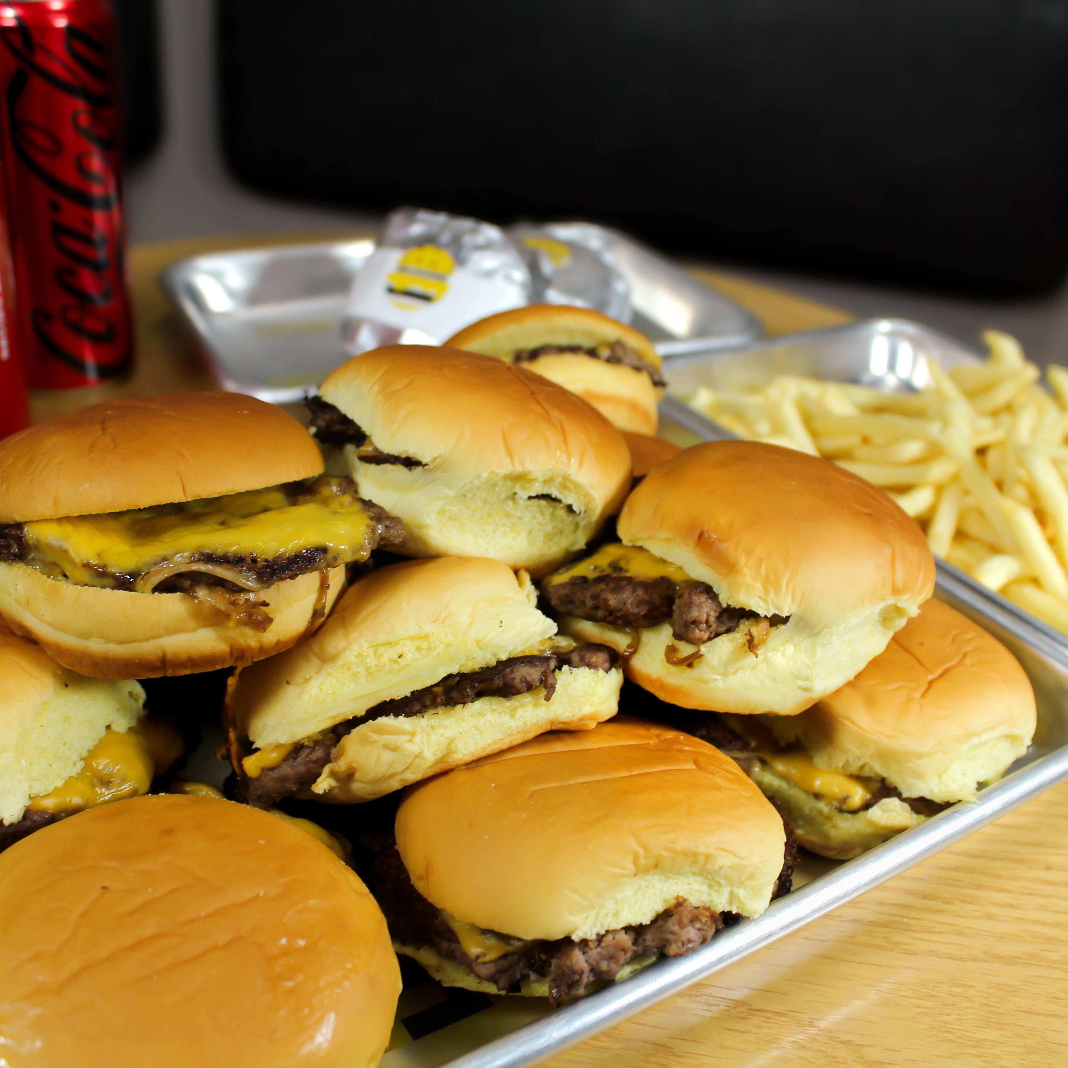 12 sliders sencillas, 4 papas, 2 smores y 4 bebidas a elegir