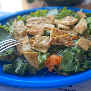 Lechuga, espinaca, manzana,zanahoria,pepeino,queso panela, arandanos y ajonjoli garapiñado.