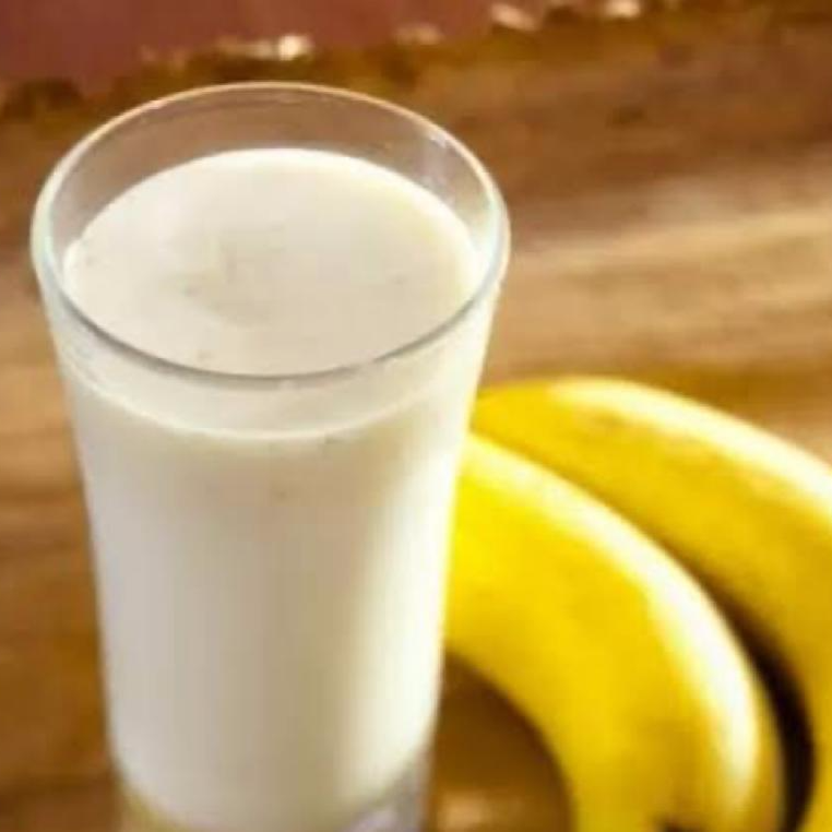 batido de platano con leche entera o deslactosada con un toque de vainilla y canela