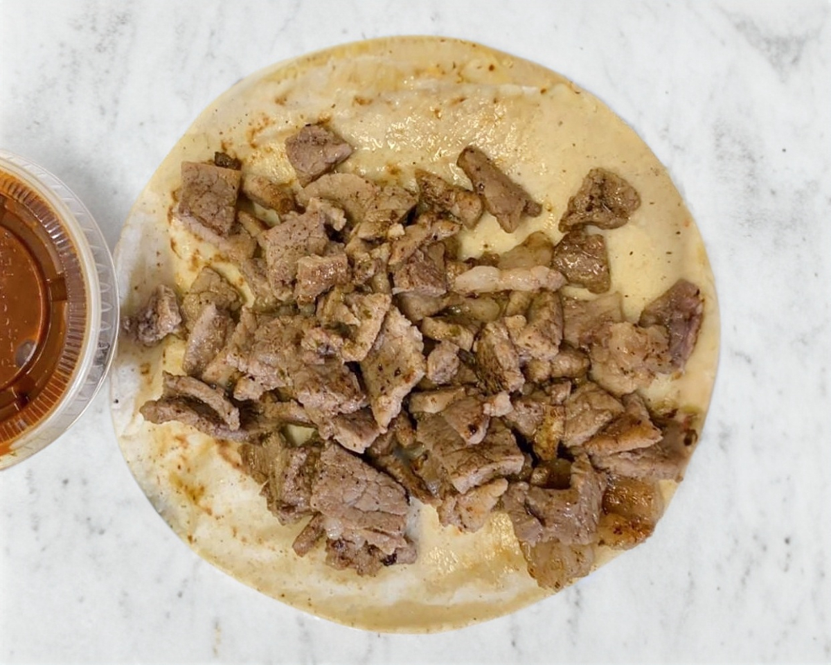 3 Taquitos con Pastor Árabe, cilantro, cebollas, limón y salsa de habanero aparte