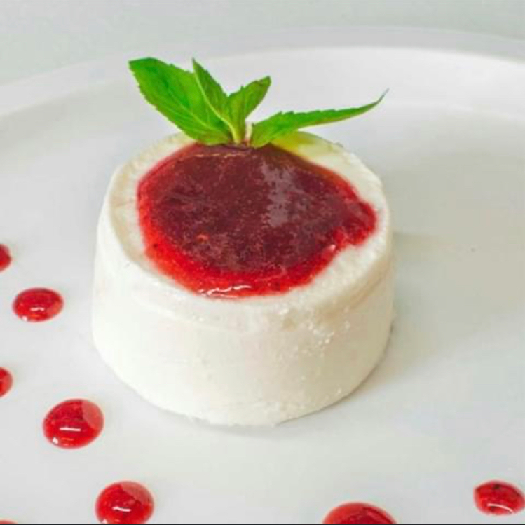 Cremosa panna cotta de yogurt griego con salsa de frutos rojos
