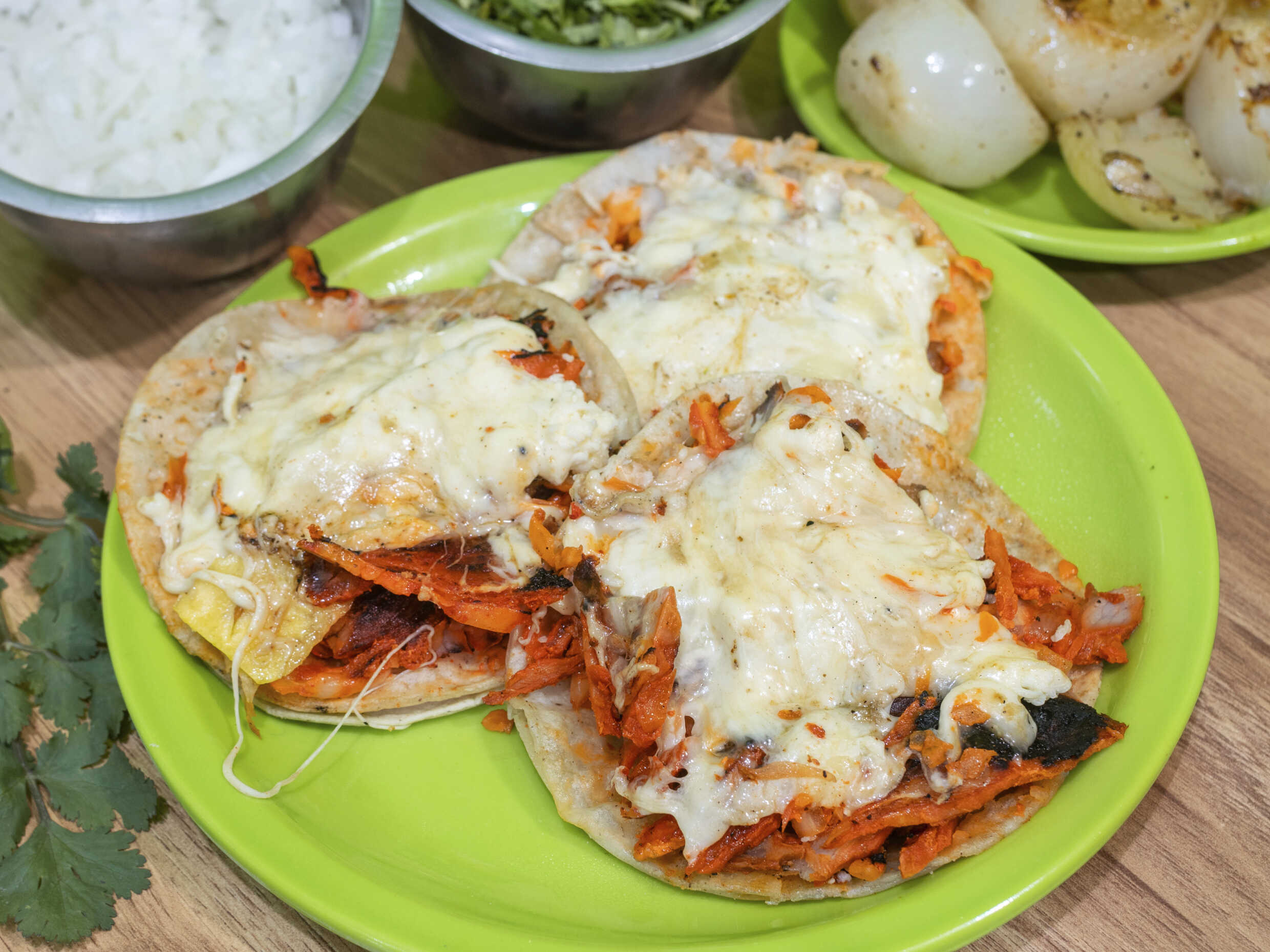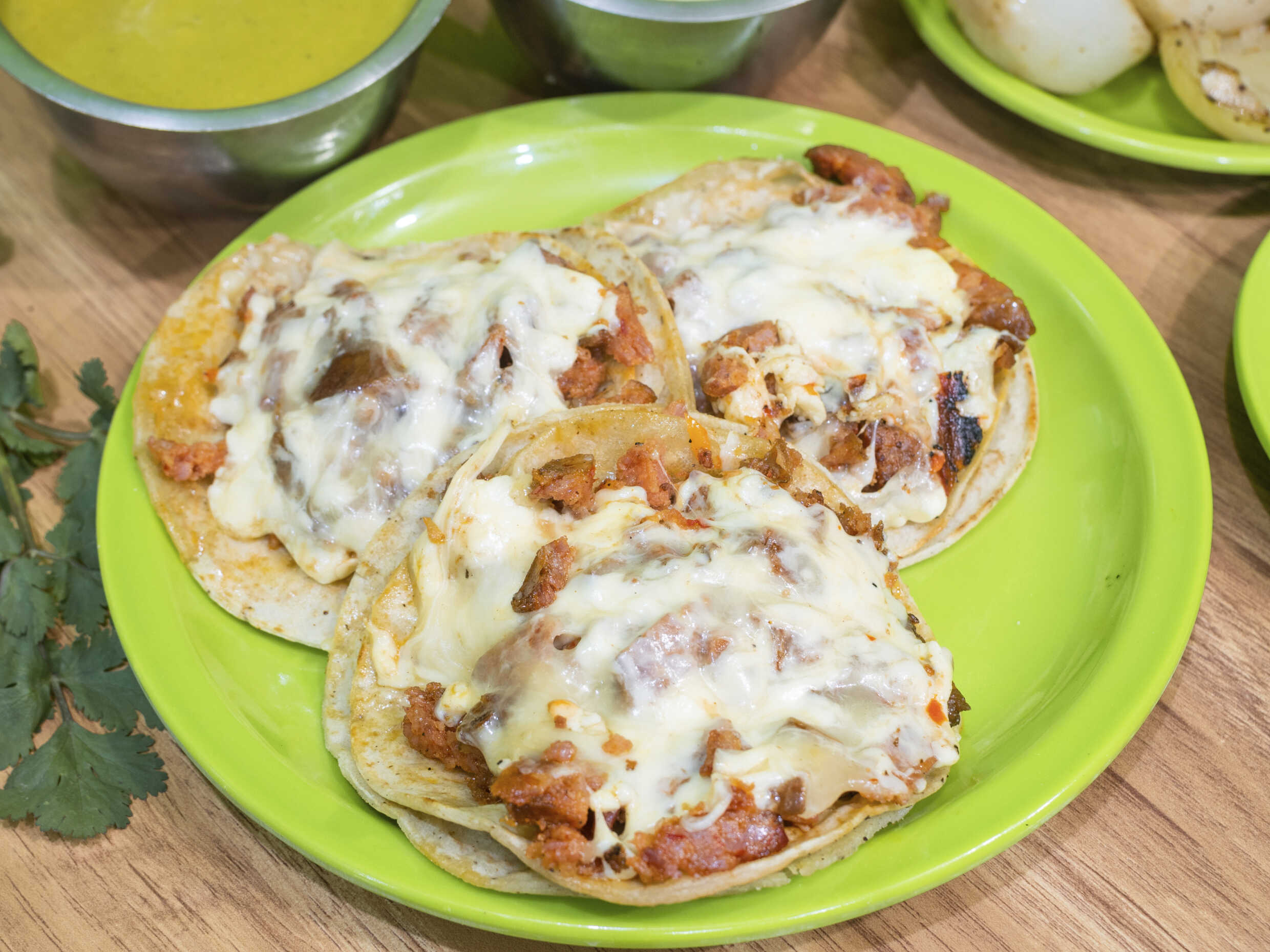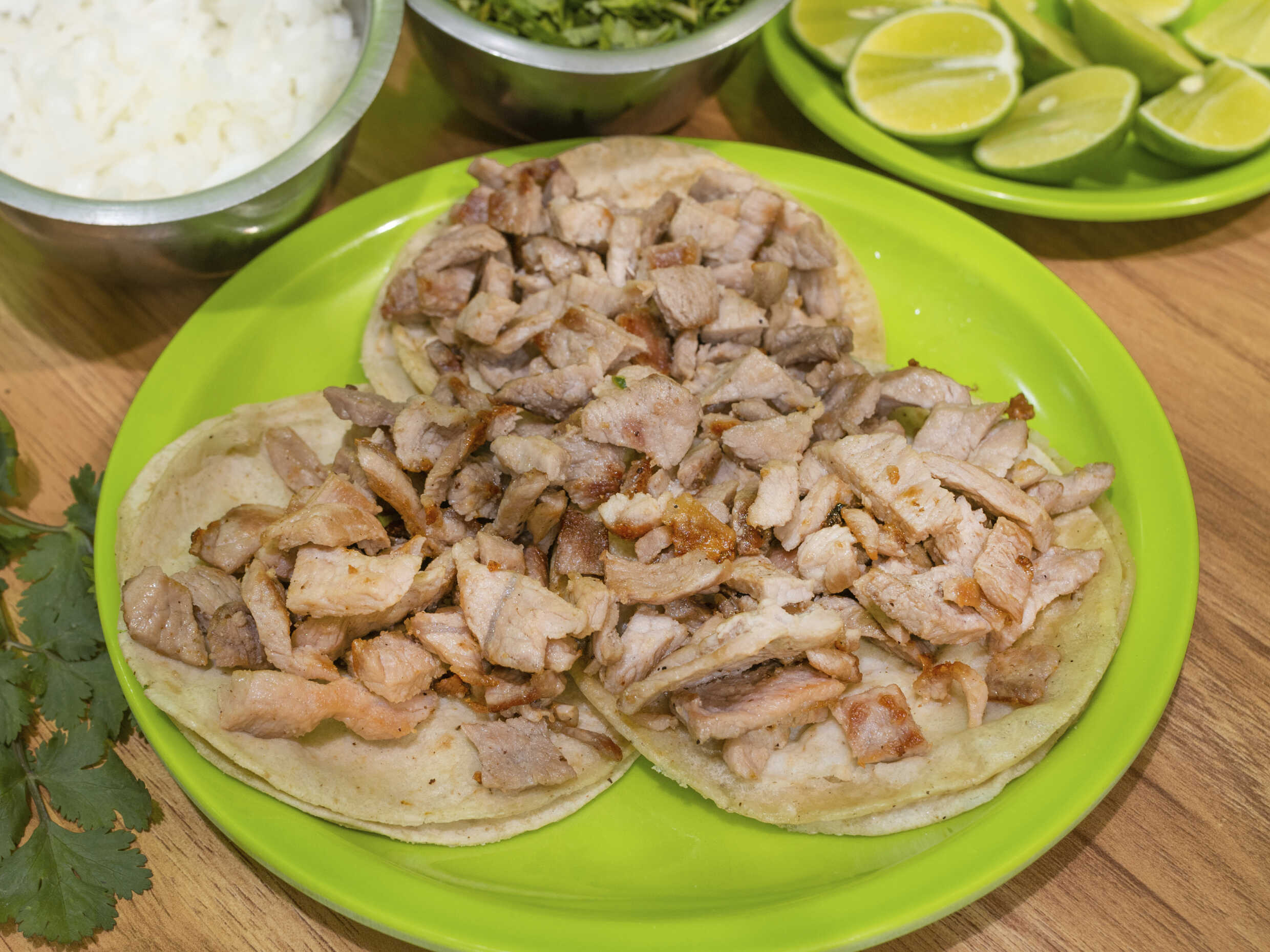 3 tacos de Chuleta Ahumada con Queso Tortilla de maíz