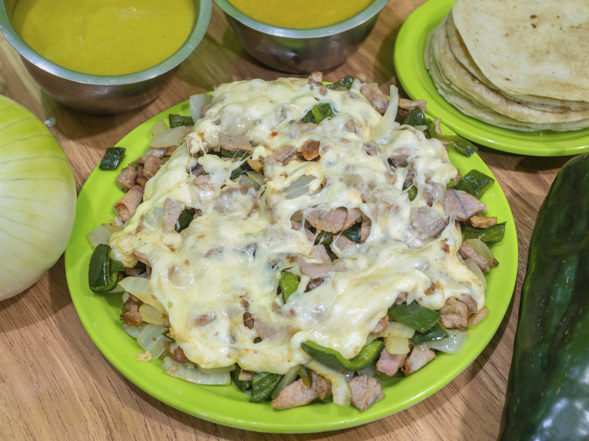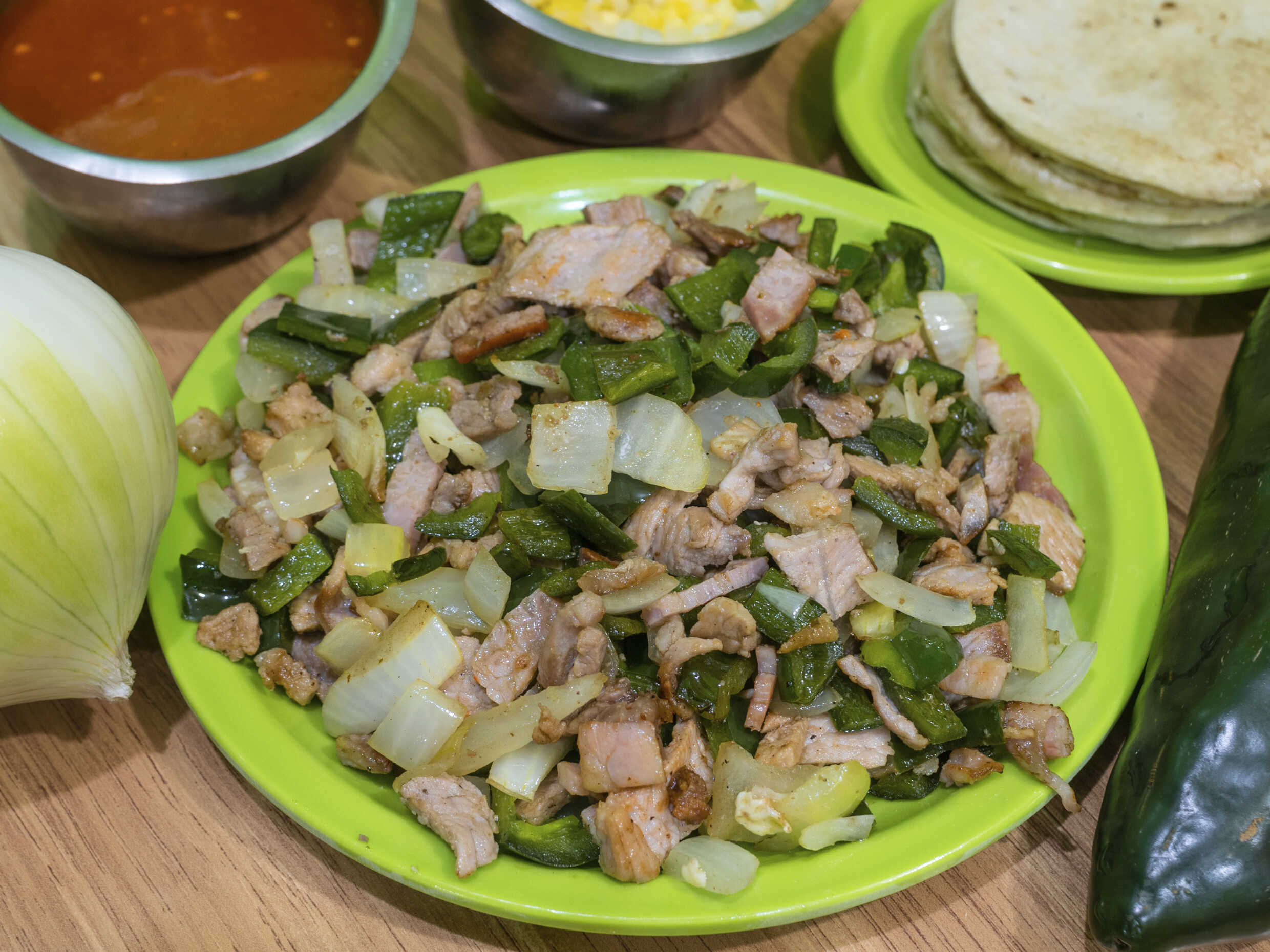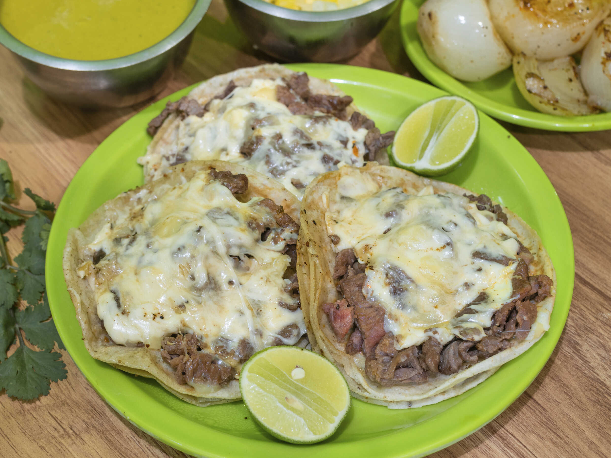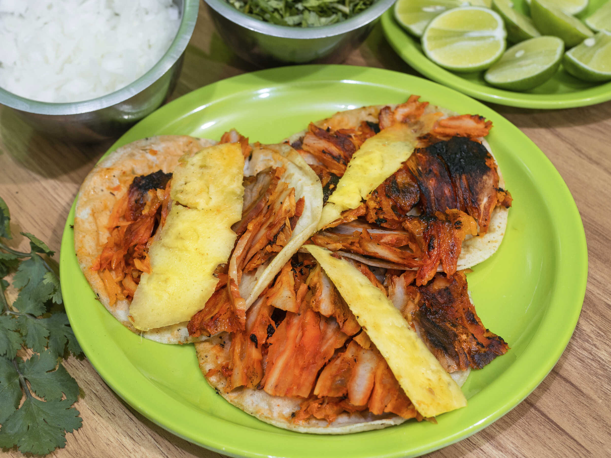 3 tacos de Chuleta Ahumada con Queso Tortilla de maíz