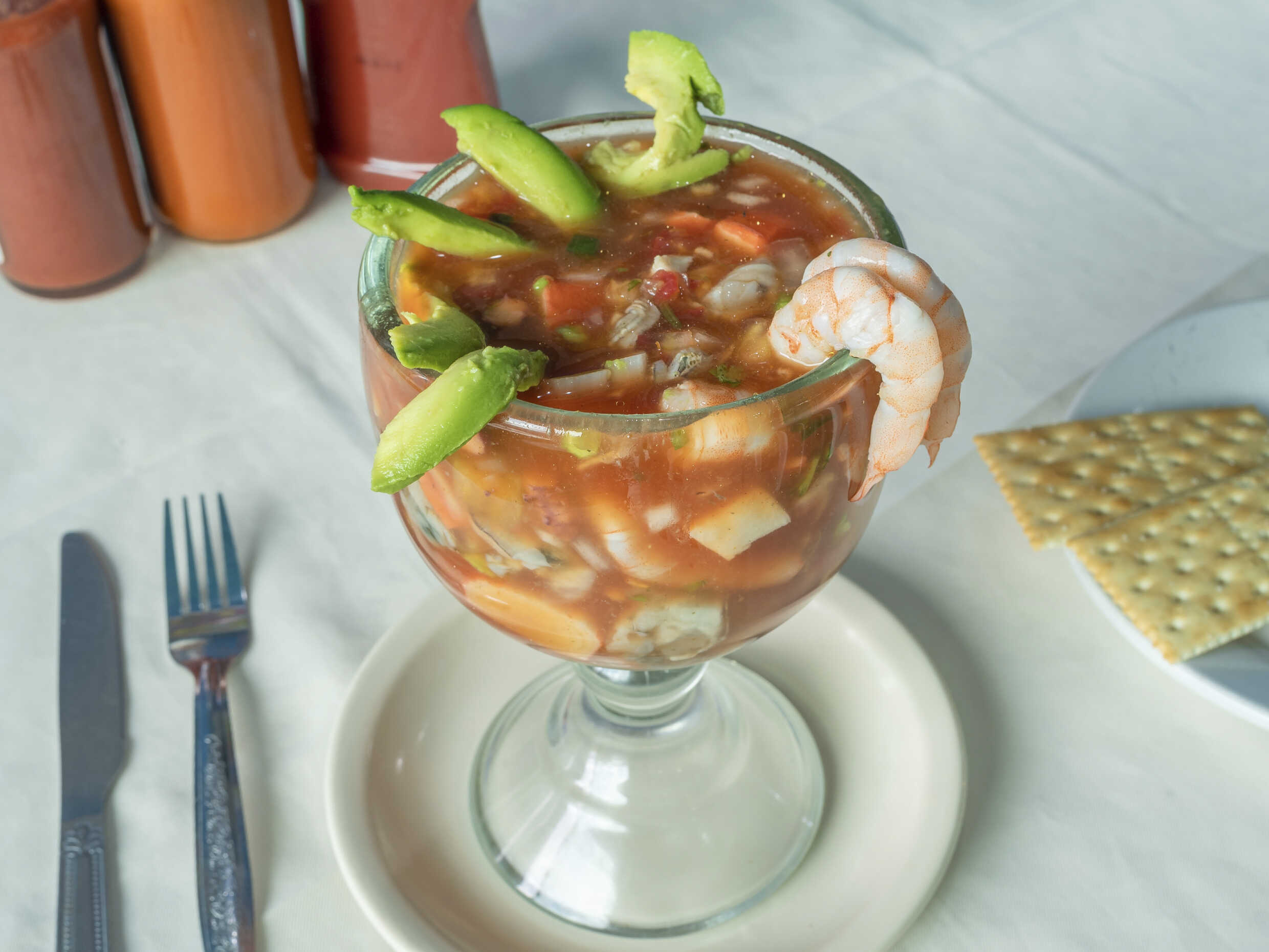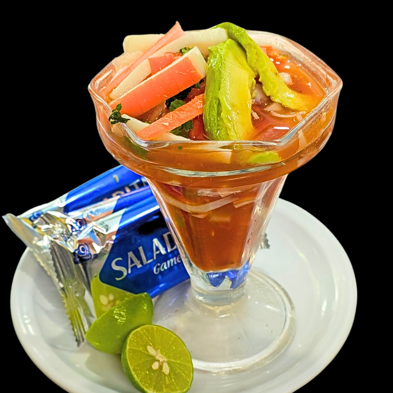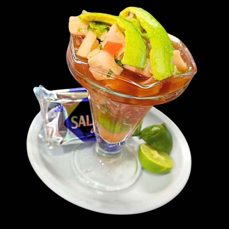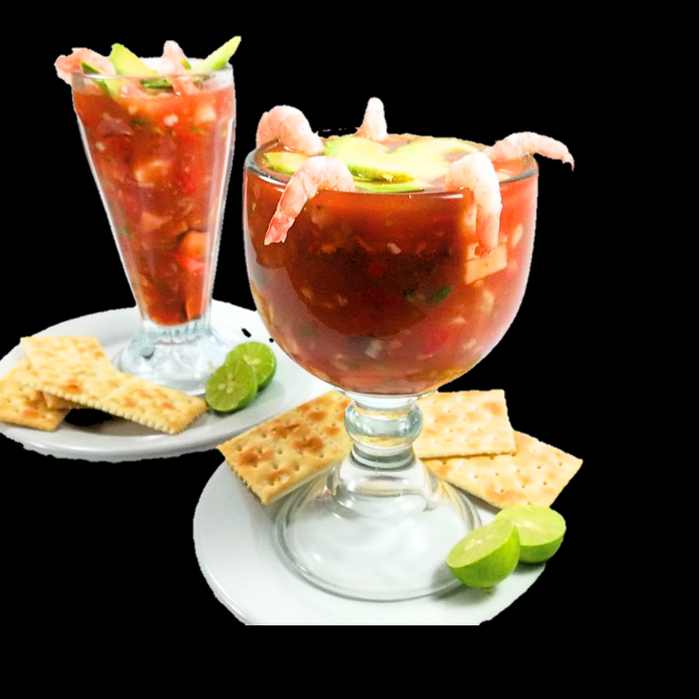 Cóctel de Camarón chico, con adicionales de tamaño con costo extra.