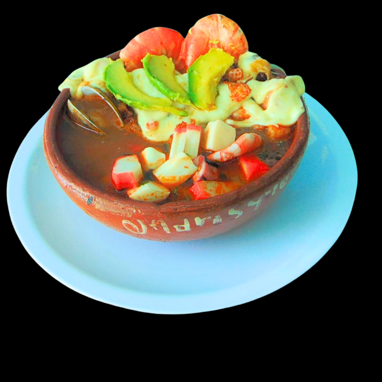 Preparado en nuestra sabrosa y tradicional captsu, camaron, pulpo, abulon, surimi, ostion, cebolla, jitomate y chile. y nuestro gran sabor