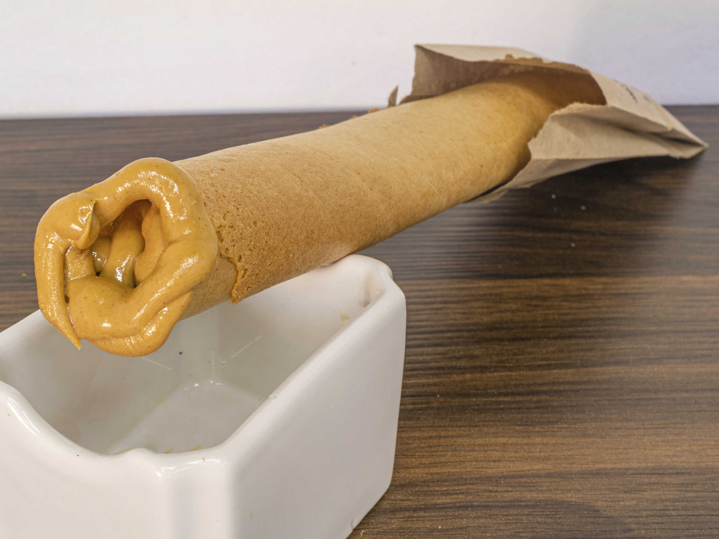 Delicioso queso bola de la casa con un toque de crema de cacahuate.