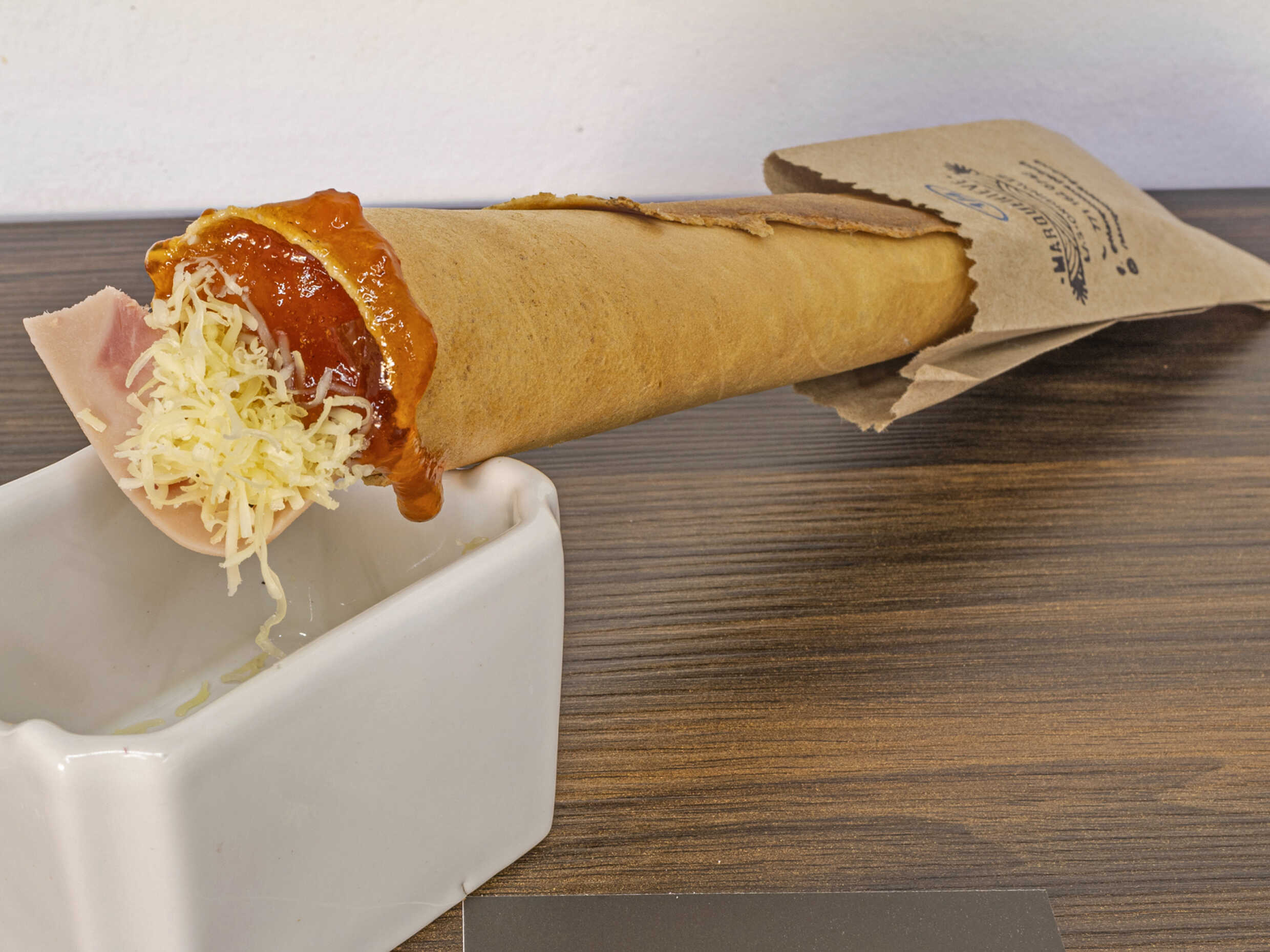Queso bola, jamón, champiñón y aderezo de la casa.