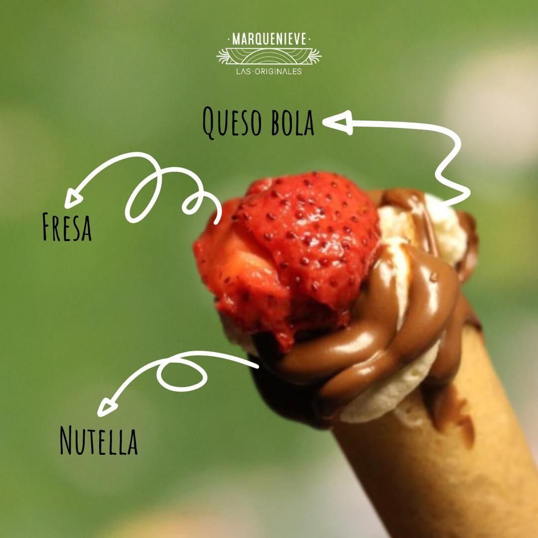 Delicioso queso bola de la casa con algún sabor de nuestras nieves artesanales.