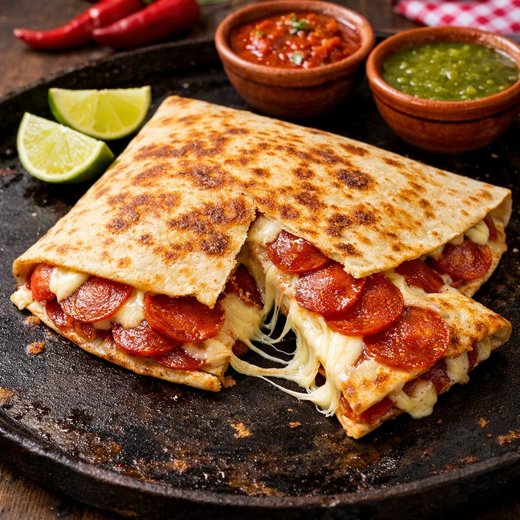 tortillas de harina grande quesoso mixtos verduras frescas y pepperonni