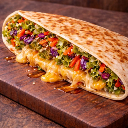 tortillas de harina aderezo especial verduras mixtas quesos varios y camaron al mojo de ajo