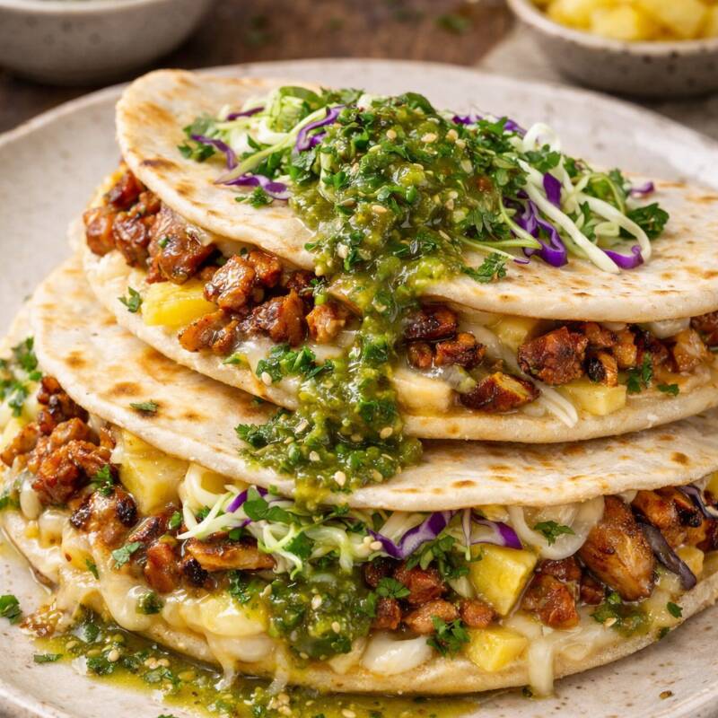 tortillas de harina grande, quewsos mixtos pastor piña en almibae y verduras frescas+