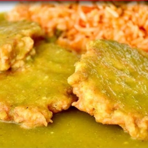 consiste en tortitas de pollo deshebrado, capeado en huevo, que se sumergen en una salsa de verde,acompañados con arroz casero y frijoles refritos sazonados.