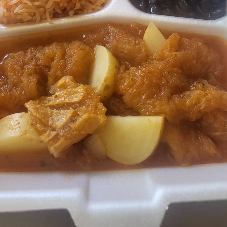 Chicharrón en Salsa Roja con Papas