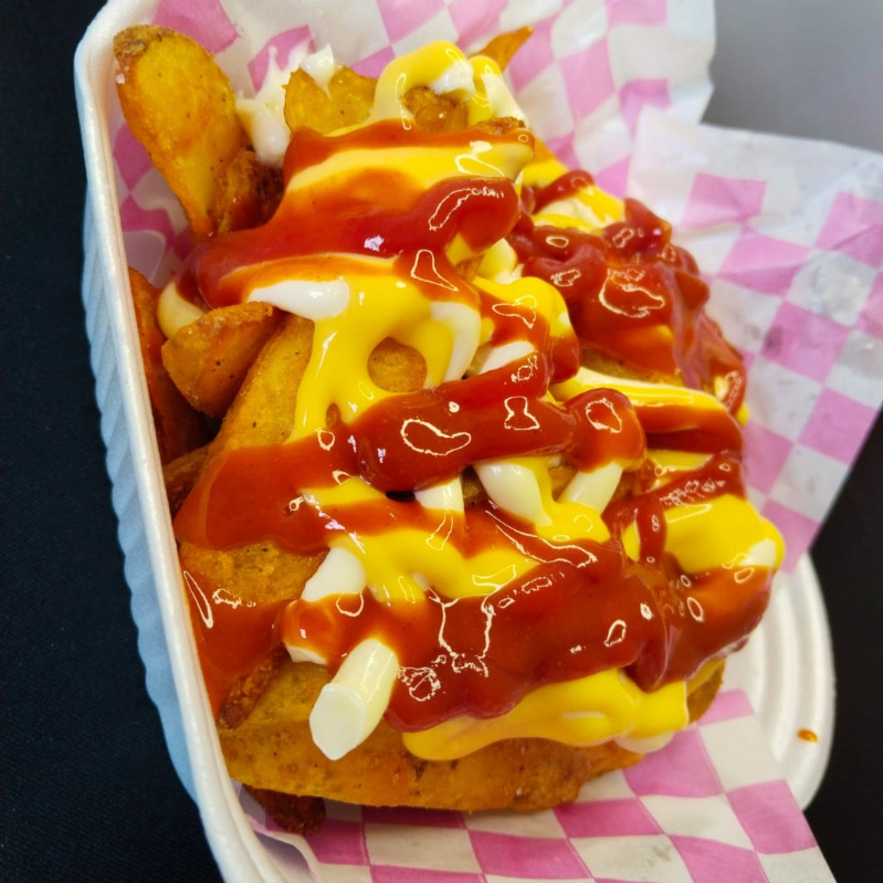Mayonesa, catsup, queso amarillo. Picante a elegir