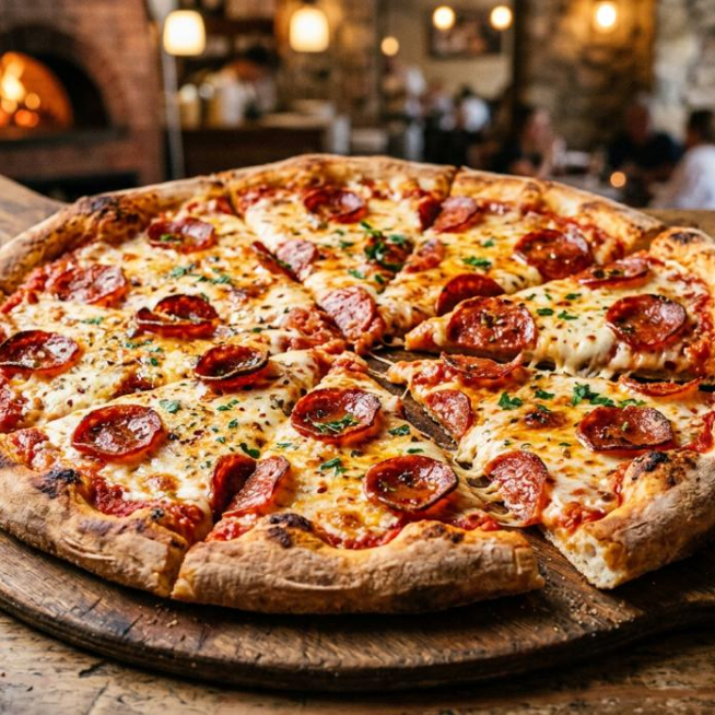 Elaborada con masa madre, queso mozzarella, salsa napolitana y pepperoni