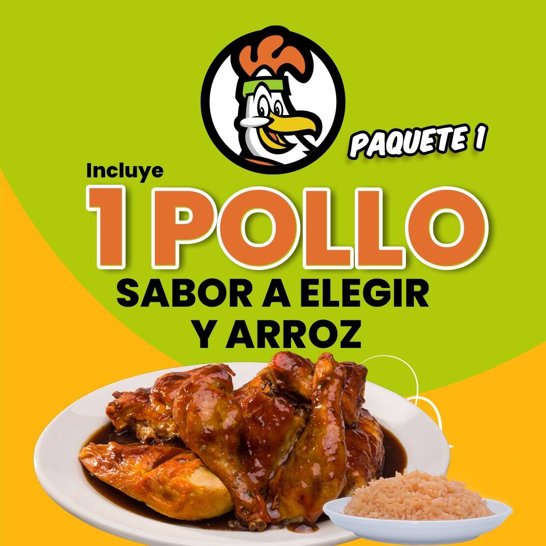 1 pollo, una salsa especial + 1 guarnicion de arroz