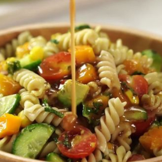 Mix de lechuga, morrón asado, cebolla caramelizada, jitomate, pepino, bistec de res asado