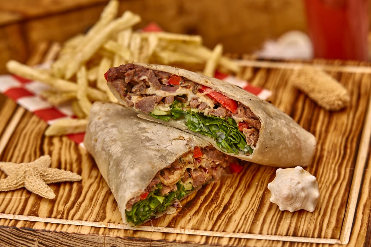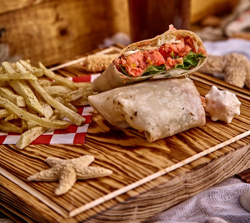 Burrito de Camarón con Arrachera con Papas