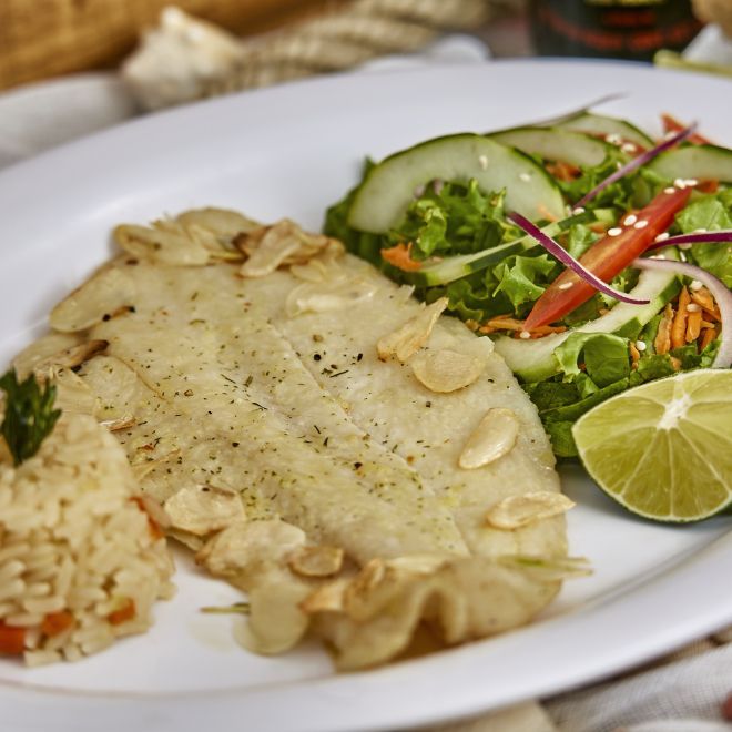 Acompañado de arroz y ensalada.