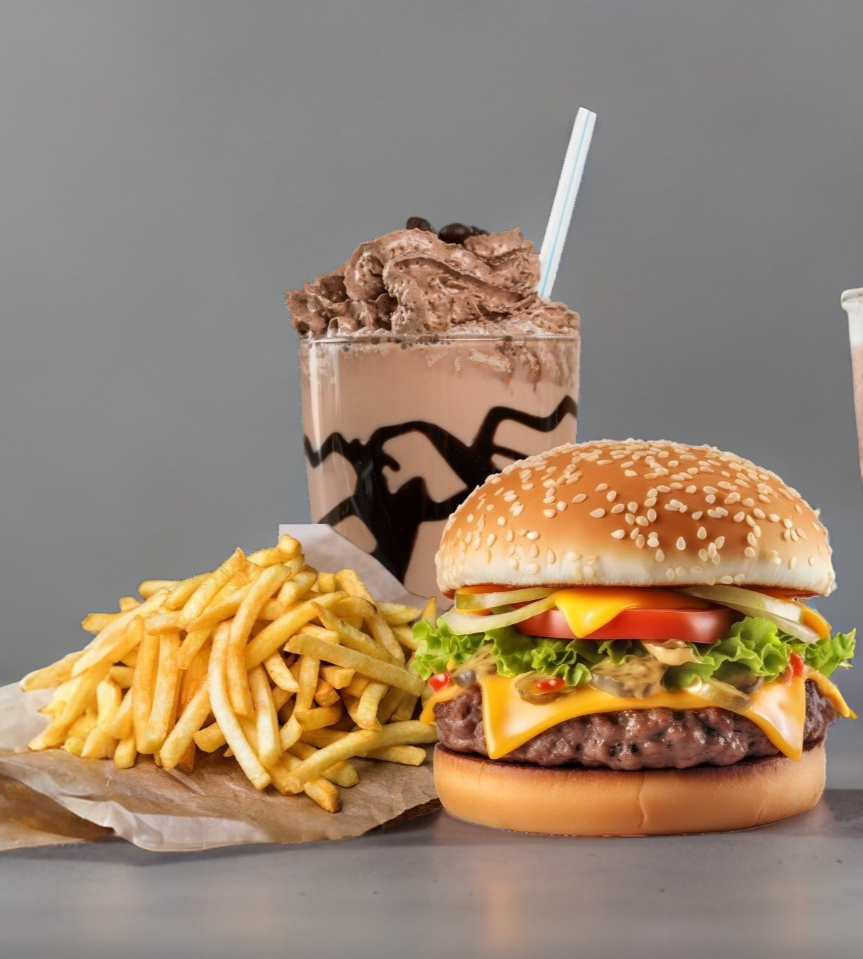 Elige entre (Hamburguesa con queso - 2 hotdog - Sandwish), Papas ala francesa, Frappe 12oz o Soda italiana 12oz