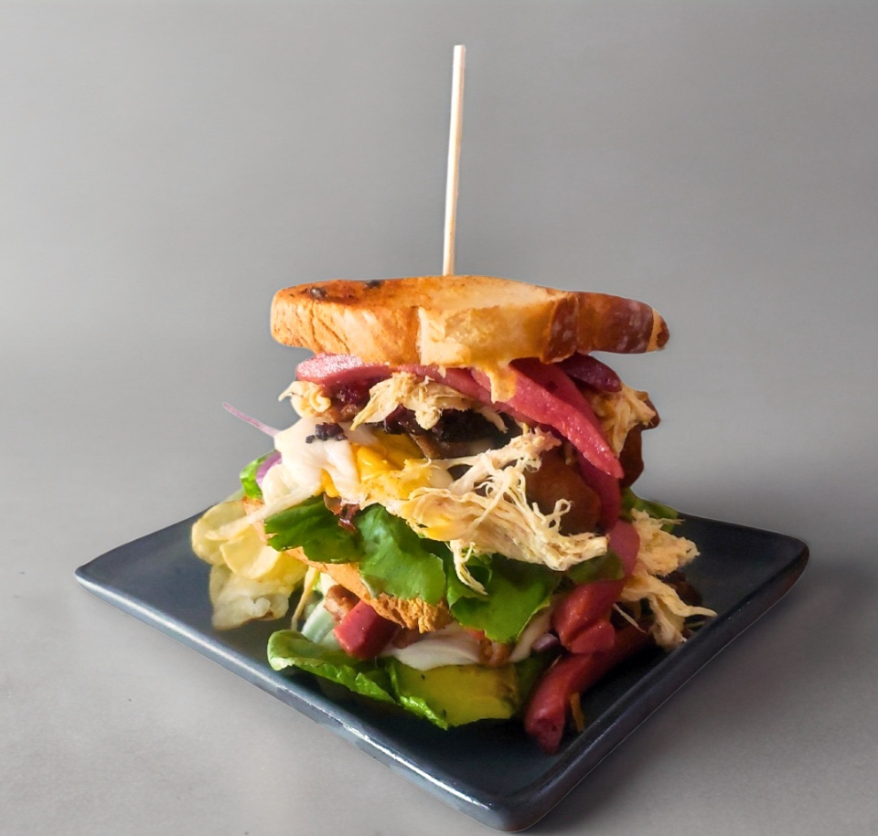 3 panes con Jamón, pollo, milanesa, quesos, salchica, Chorizo, Lechuga, jitomate, cebolla morada, aguacate