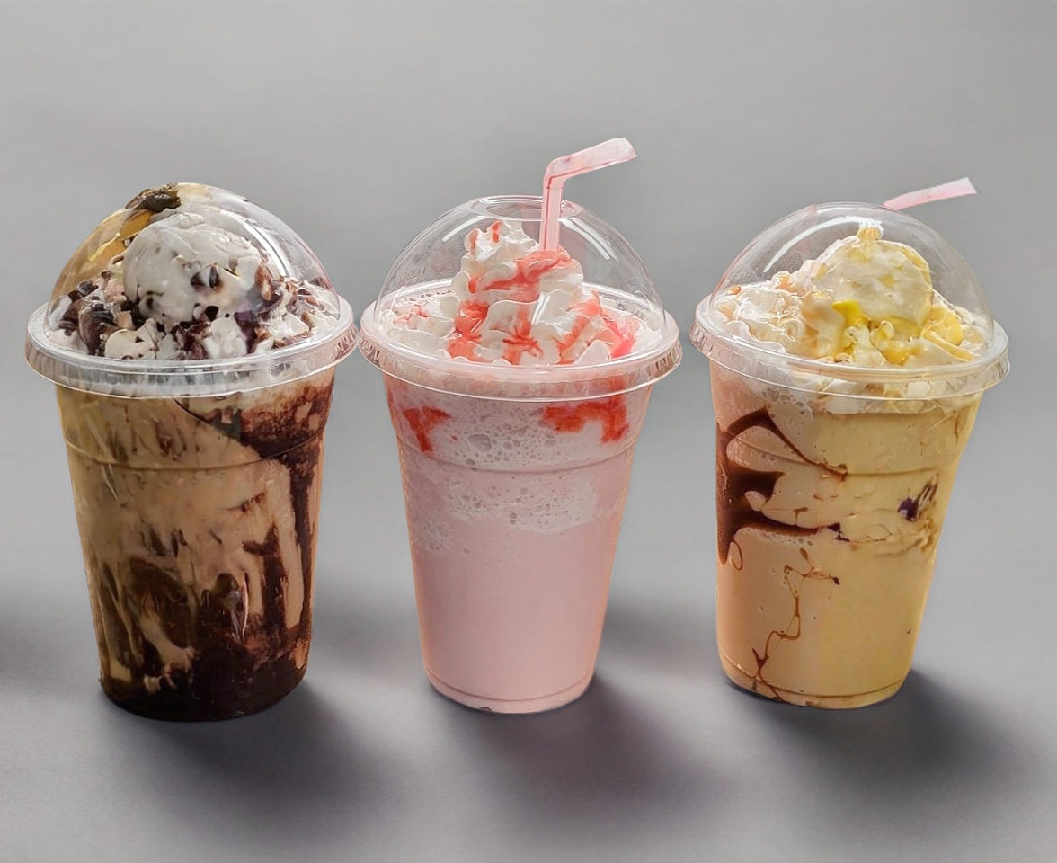 Malteada 16oz, con fruta o chispa de chocolate dependiendo del sabor y galleta en trozo