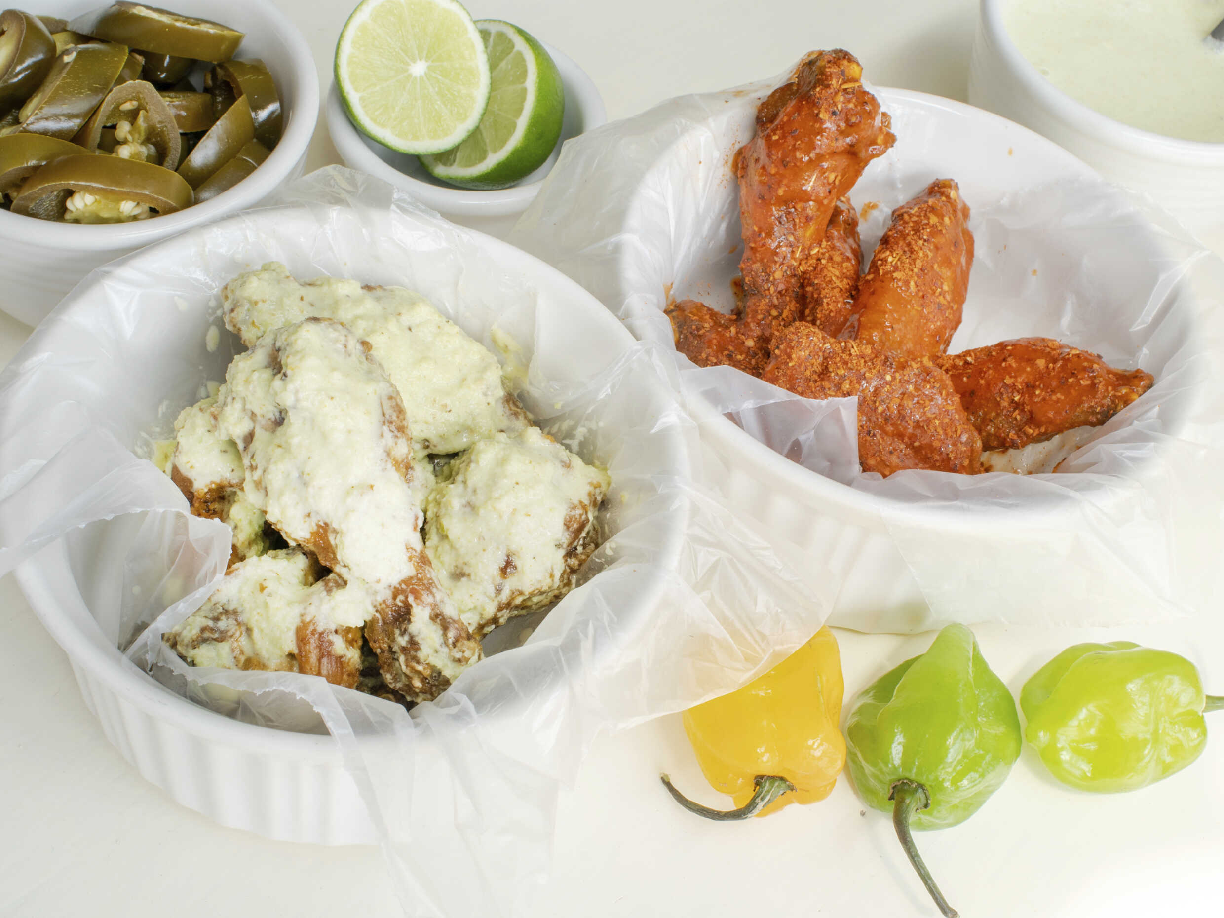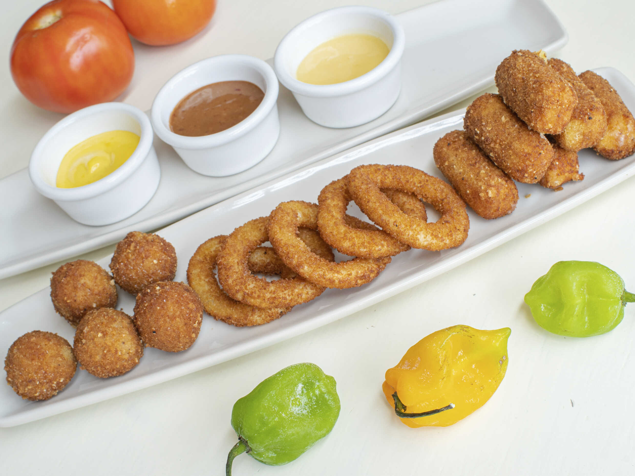 Rellenas de jalapeños acompañadas con aderezo de mango.