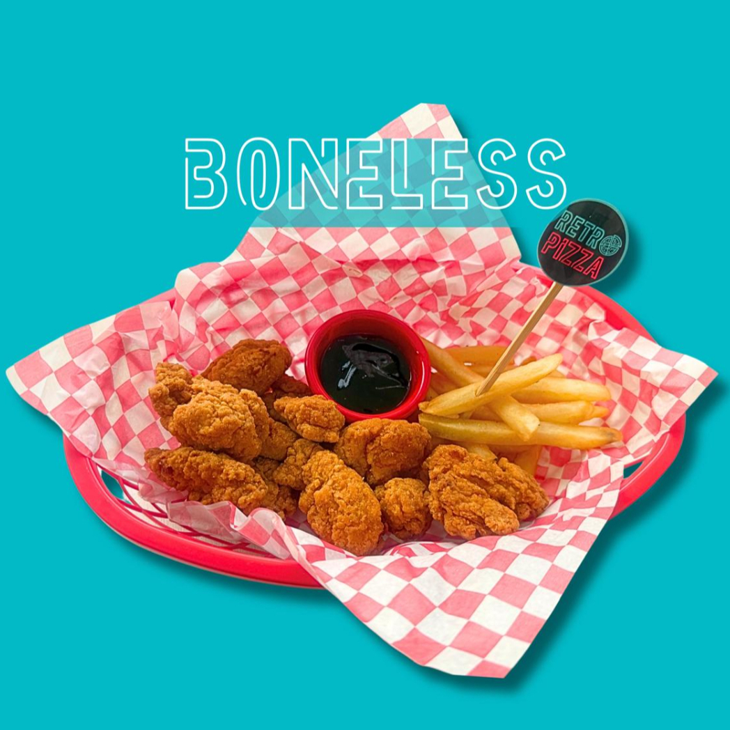 320 g. de boneless 100% pechuga de pollo, acompañados de papas y aderezo de su eleccion.)