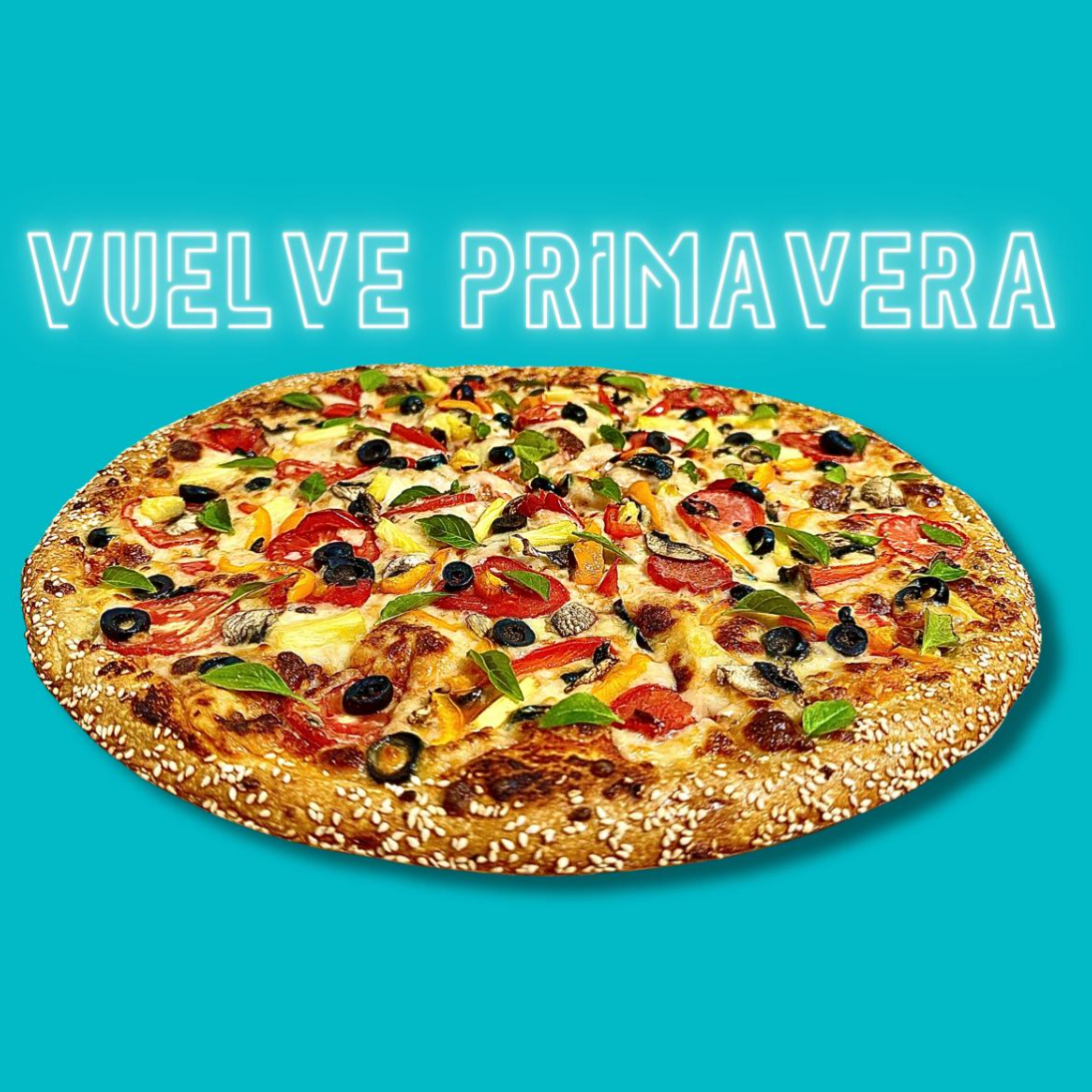 Tomate, piña, aceituna negra, pimiento mini, champiñon y albahaca fresca