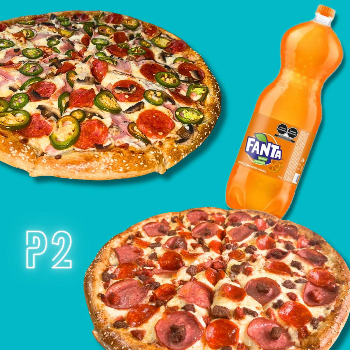 2 Pizzas familiares + Refreso 2lt sabor
