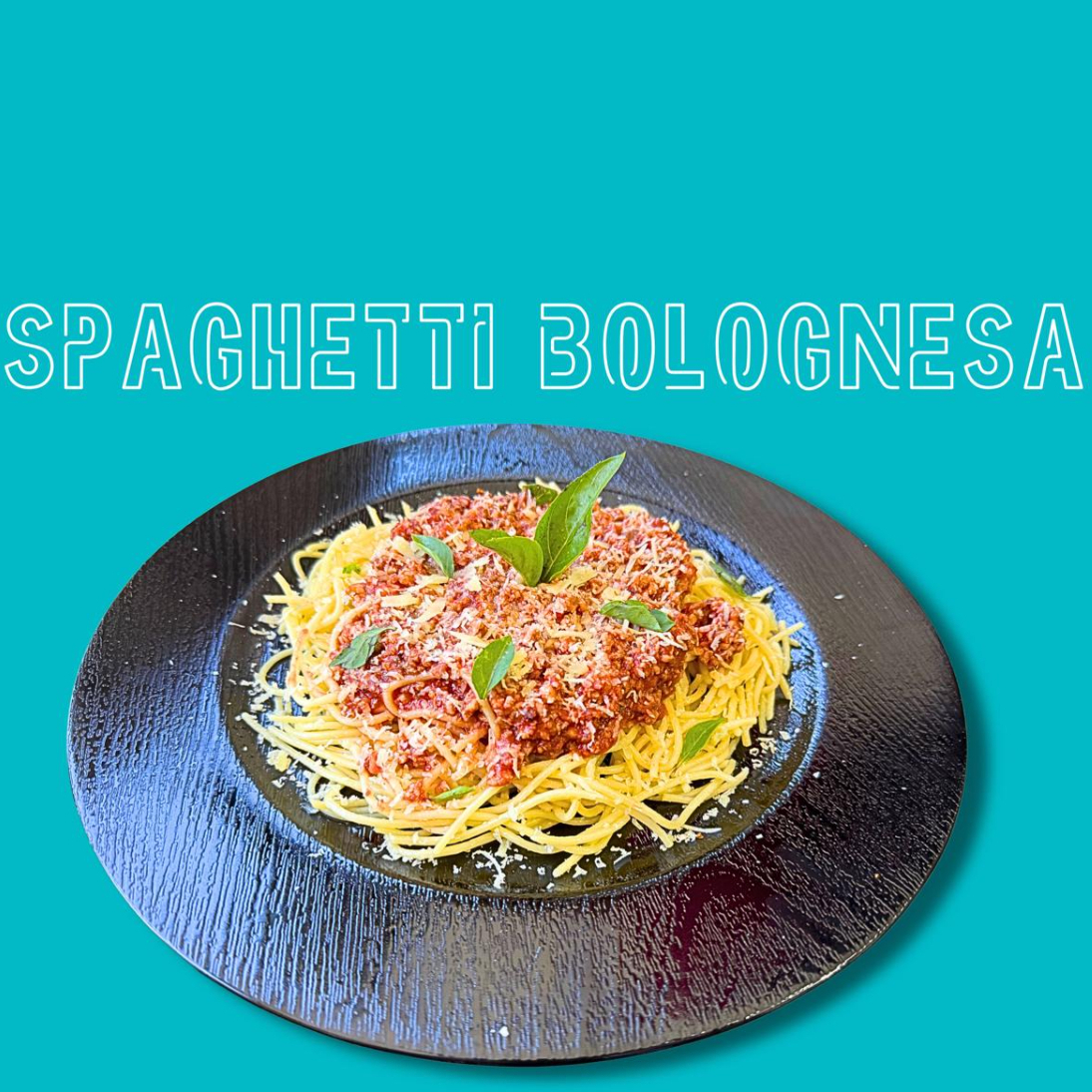 700 g. de spaghetti a la bolognesa, con queso parmesano recien rallado y albahaca fresca
