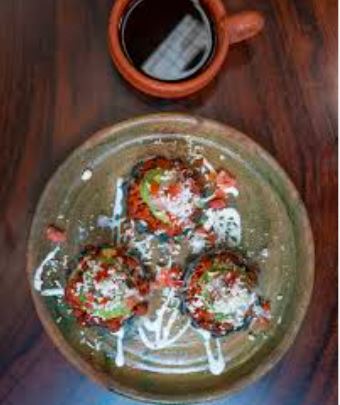 3 Pz Rellenas de frijoles refritos, crema, queso y tierritas, bañadas en salsa roja