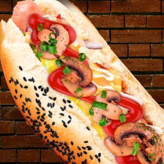 Delicioso jocho salchicha, champiñones y un toque santo. Acompañado de 130 grs de papas a la francesa.