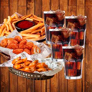 400 grs de Boneless*1 + 30 alitas*1 + Papas a la Francesa*1 + Coca Cola 355 Ml*4