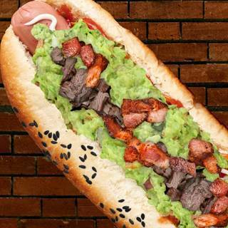Delicioso jocho con delicioso guacamole, salchicha, pico de gallo y arrachera. Acompañado de 130 grs de papas a la francesa.