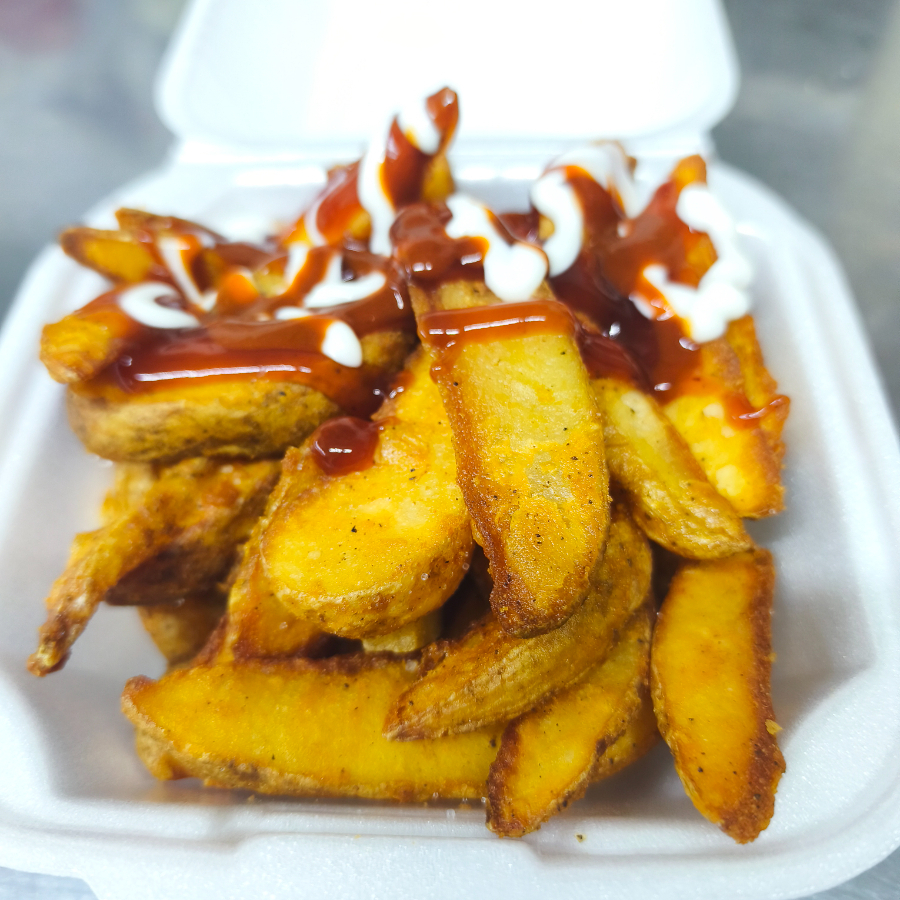 PAPAS CORTE GAJO SAZONADAS FRITAS CON CAPTSUP MAYONESA VALENTINA