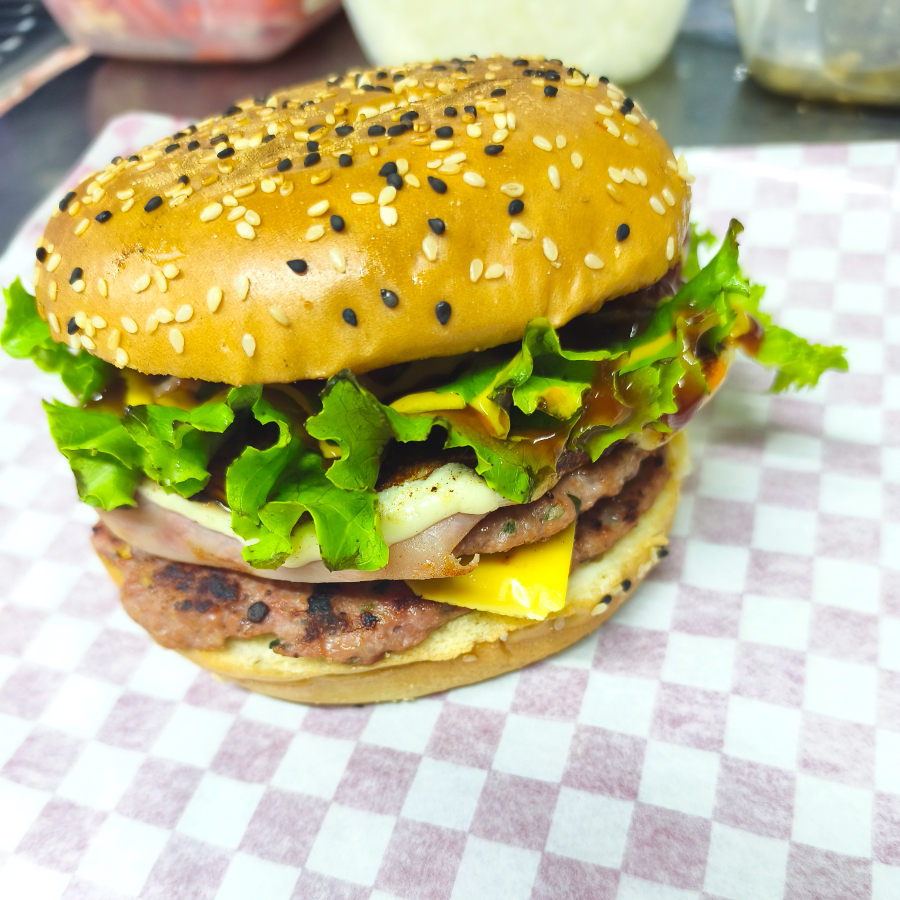 Doble carne, Q. Amarillo, Q. Oaxaca, jamón, 🥬🍅🧅🌶️ catsup mayonesa mostaza, jitomate, cebolla