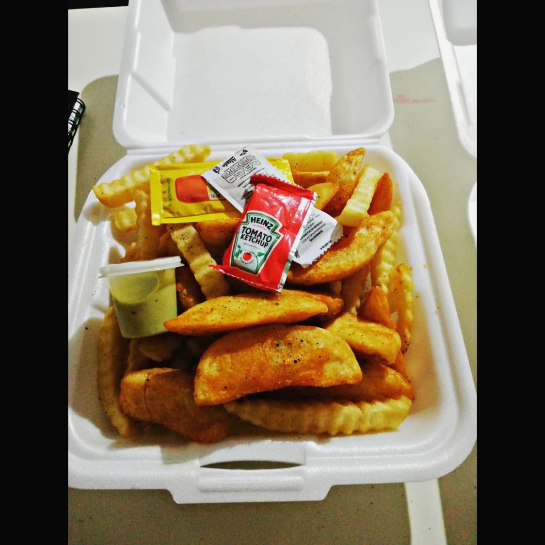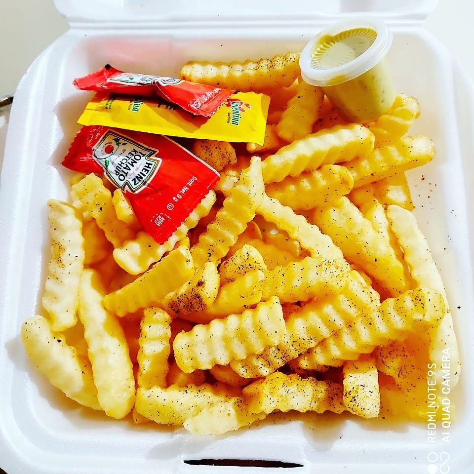 Ricas y crujientes papas,acompañado de una salsita verde,francesa y gajo