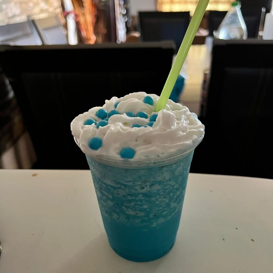 malteada,sabor chicle y chsipas de chocolate ,crema batida