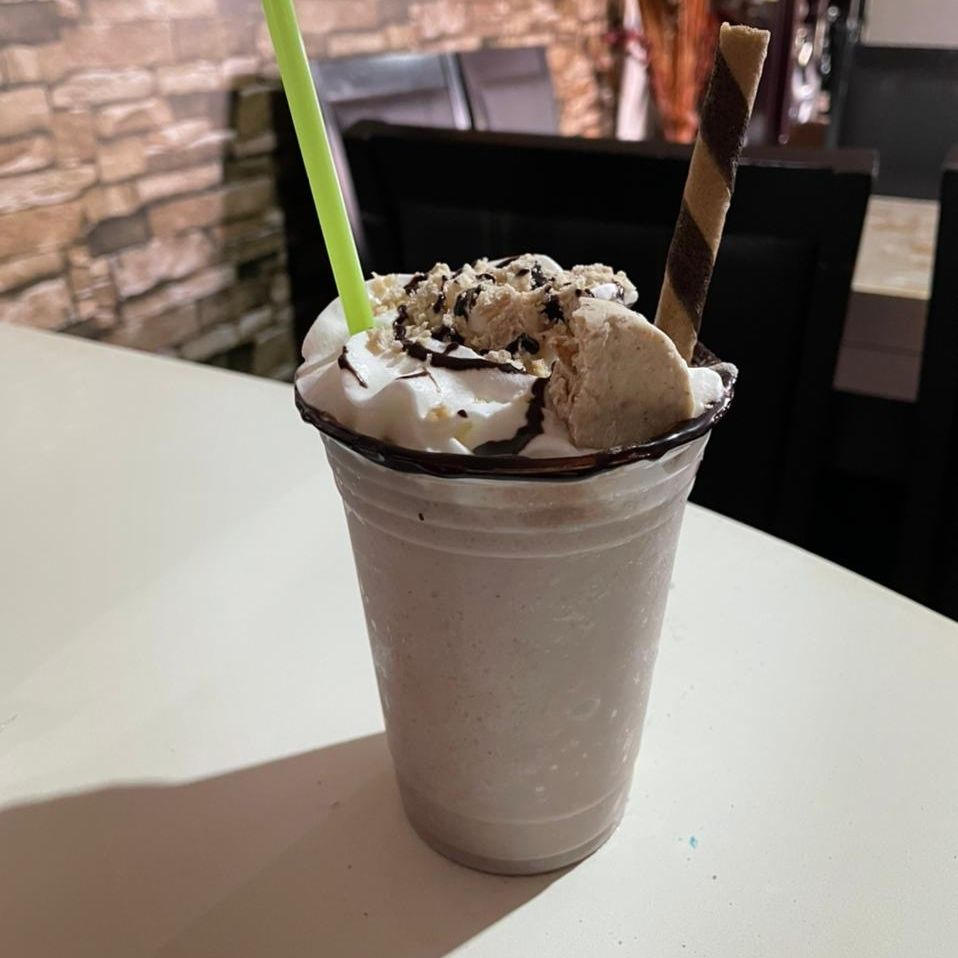 malteada ,sabor a oreo con rico chocolate ,crema batida y con decoracion con una galleta oreo
