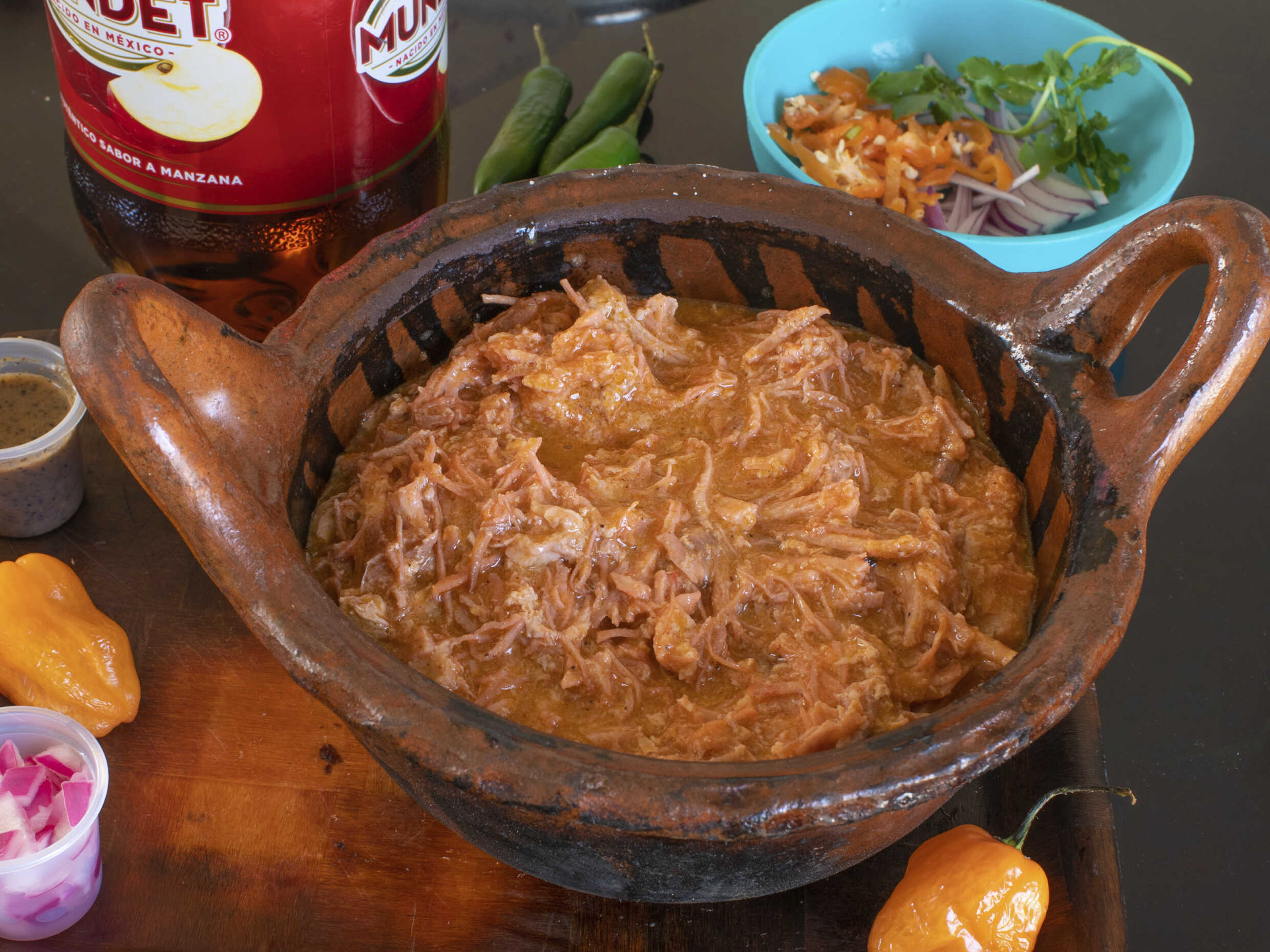 1kg de Cochinita Pi-BIL, 1/2 kg de tortillas, negra, cebollita morada y limones.