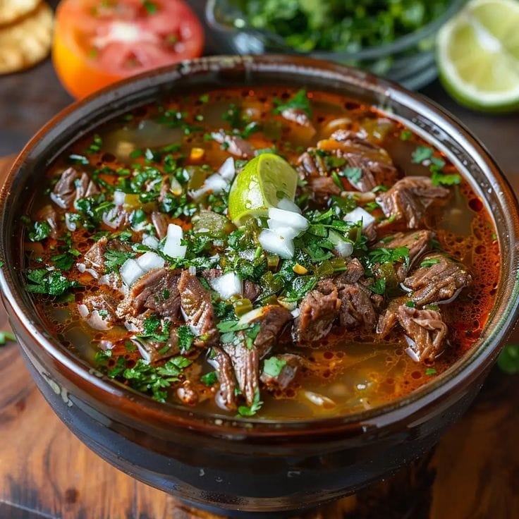 500 ml De delicioso carne y consomé de birria, acompañado de verduras y limones.