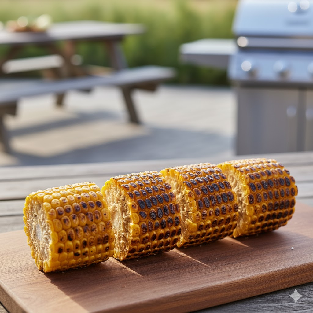 4 pzas De elote dulce tipo americano asados al carbón.