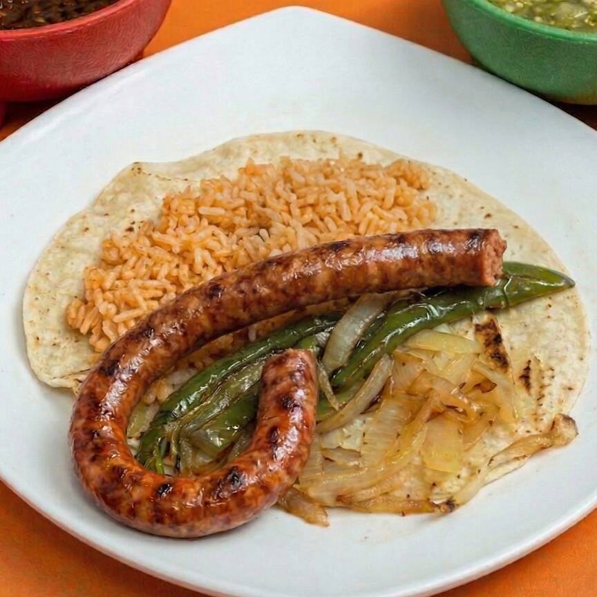Típico taco de chistorra asada con el sabor característico del pimentón.